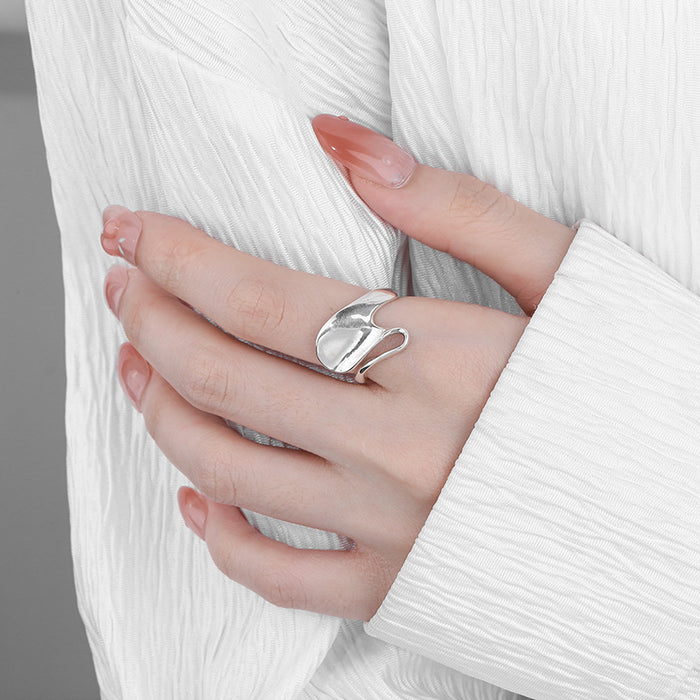 Wholesale Solid silver geometric irregular shaped smooth ring, exaggerated and fashionable food ring