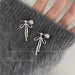 Wholesale Pearl Quality Hemp Gray Two-Wear Bow Silver Needle Earrings