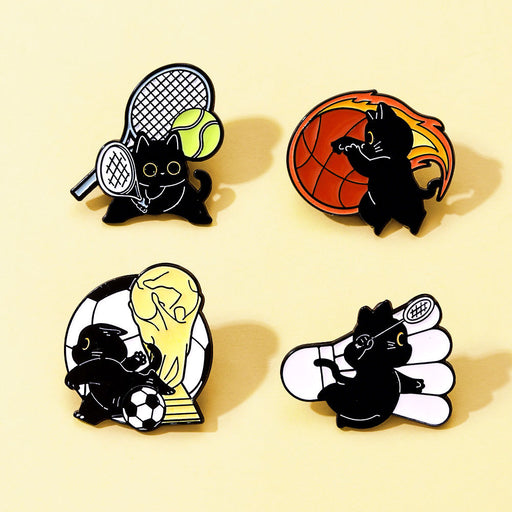 Original price USD$0.23 - Original price USD$0.23Original price USD$0.23USD$0.43USD$0.43 - USD$0.43Current price USD$0.43Wholesale Sports Cat Brooch Badge Cute Black Cat Badminton Tennis Football Basketball Schoolbag Decoration Oil-Drip Zinc Alloy