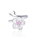 Wholesale Pink diamond cherry blossom ring for women, light luxury, niche fashion, personality, adjustable opening ring, peach blossom tail ring