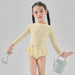 Wholesale Children's Swimwear Girls' Children's Polyester Long Sleeve Sunscreen Solid Color Little Girl's Hot Spring Beach Swimwear