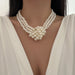 Wholesale Fashionable trend multi-layer imitation pearl necklace, artistic retro black and white color matching, high-end feeling pearl collar
