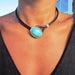 Wholesale New retro creative leather turquoise collarbone chain exaggerated trendy neck ring