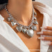 Wholesale New retro heart-shaped necklace with fashionable punk pattern, heart-shaped collarbone chain, exquisite personalized jewelry