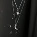 Wholesale Silver sparkling diamond starry moon double layered necklace, niche collarbone chain design, light luxury necklace