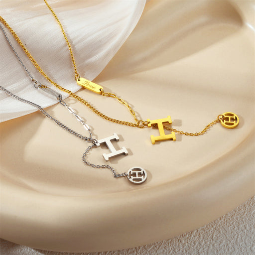 Precio original USD$0.94 - Precio original USD$1.04Precio original USD$0.94USD$1.86 - USD$1.88USD$1.86 - USD$1.88Precio actual USD$1.86Wholesale Electroplated design with tassel letters, tassel titanium steel necklace, minimalist collarbone chain