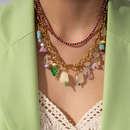 Precio original USD$3.60 - Precio original USD$4.16Precio original USD$3.60USD$6.84USD$6.84 - USD$7.49Precio actual USD$6.84Wholesale Fashionable and personalized bead necklace made of stainless steel paired with natural stone pendant, original design, elegant women's accessories