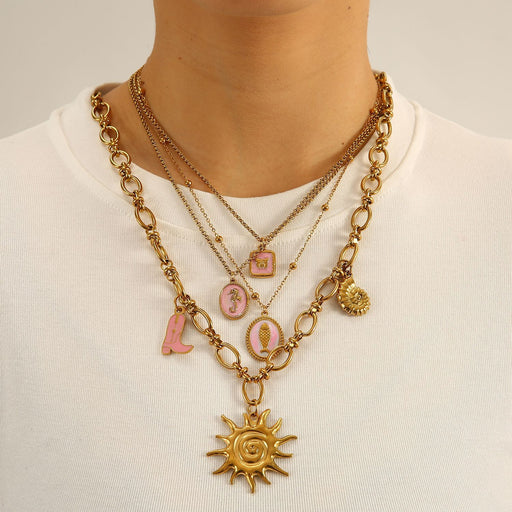 Precio original USD$1.37 - Precio original USD$3.60Precio original USD$1.37USD$2.47 - USD$6.84USD$2.47 - USD$6.84Precio actual USD$2.47Wholesale Fashionable stainless steel ocean style necklace paired with pendant color preservation electroplating