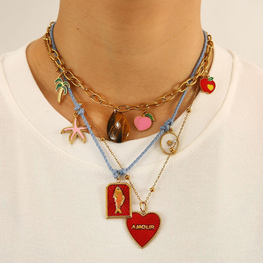 Precio original USD$1.76 - Precio original USD$2.76Precio original USD$1.76USD$3.35 - USD$4.98USD$3.35 - USD$4.98Precio actual USD$3.35Wholesale Original design color rope necklace paired with stainless steel heart-shaped oil drop pendant, personalized DIY accessory