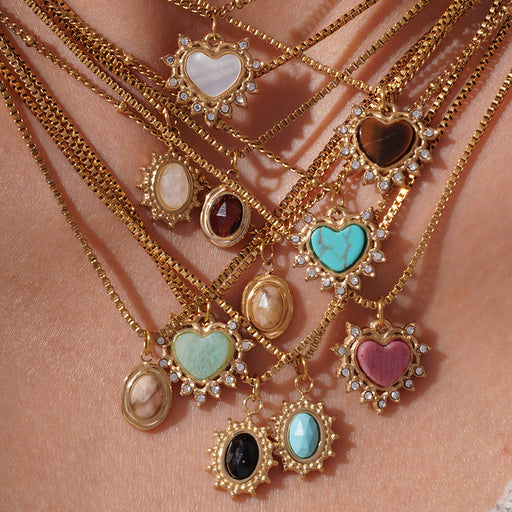Precio original USD$3.19 - Precio original USD$4.54Precio original USD$3.19USD$5.74 - USD$8.63USD$5.74 - USD$8.63Precio actual USD$5.74Wholesale Personalized original design stainless steel natural stone necklace with heart pendant matching