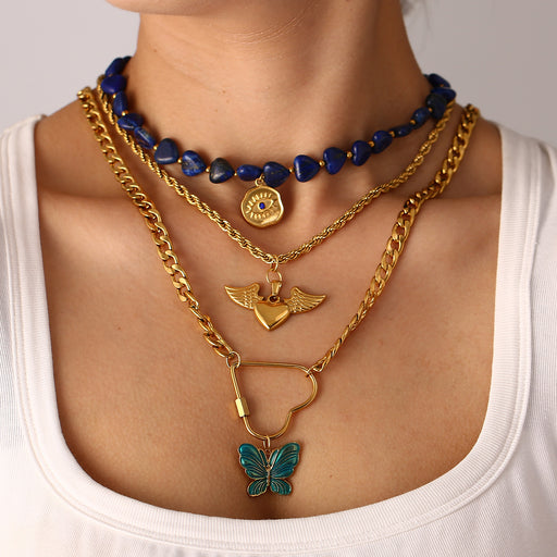 Precio original USD$2.36 - Precio original USD$3.46Precio original USD$2.36USD$4.24 - USD$6.23USD$4.24 - USD$6.23Precio actual USD$4.24Wholesale Personalized and flamboyant style stainless steel Cuban chain wing heart necklace, natural stone necklace wholesale