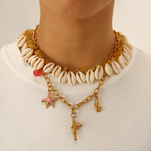Precio original USD$1.76 - Precio original USD$3.15Precio original USD$1.76USD$3.17 - USD$5.99USD$3.17 - USD$5.99Precio actual USD$3.17Wholesale Fashionable ocean style shell necklace paired with personalized stainless steel starfish shrimp pendant wholesale