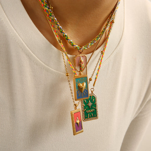 Precio original USD$1.37 - Precio original USD$1.37Precio original USD$1.37USD$2.47 - USD$2.61USD$2.47 - USD$2.61Precio actual USD$2.47Wholesale Vintage stainless steel tarot card square heart-shaped necklace with personalized pendant and color preservation wholesale