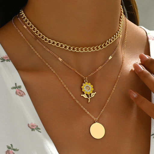 Precio original USD$0.81 - Precio original USD$0.81Precio original USD$0.81USD$1.45USD$1.45 - USD$1.45Precio actual USD$1.45Wholesale Sunflower round pendant, three-layer necklace, women's niche, versatile, high-end, collarbone chain necklace