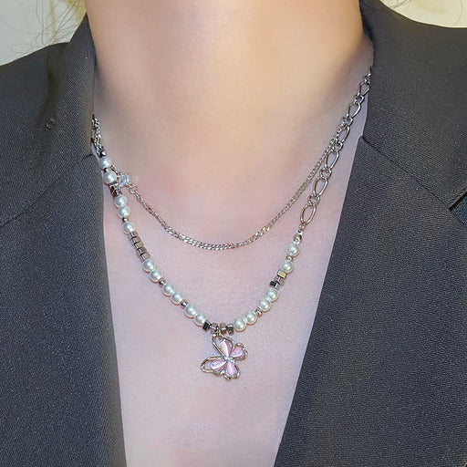 Precio original USD$0.46 - Precio original USD$0.46Precio original USD$0.46USD$0.87USD$0.87 - USD$0.87Precio actual USD$0.87Wholesale New Zircon Pearl Cat Eye Stone Butterfly Necklace Double layered Pendant Clavicle Chain Beads