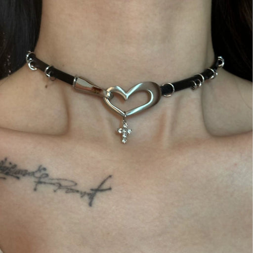 Precio original USD$0.63 - Precio original USD$0.63Precio original USD$0.63USD$1.27USD$1.27 - USD$1.27Precio actual USD$1.27Wholesale Brown Leather Metal Heart Cross Short Necklace Clavicle Chain