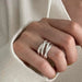 Wholesale Handmade layered silver ring with multiple layers of strands, exaggerated layering, cold style, diamond