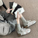 Wholesale Socks with rolled edges, embroidered hearts, simple vertical stripes, versatile stacking socks