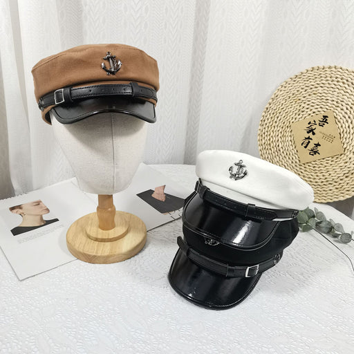 Precio original USD$2.35 - Precio original USD$2.35Precio original USD$2.35USD$4.23USD$4.23 - USD$4.46Precio actual USD$4.23Wholesale New woolen octagonal hat women's belt buckle boat anchor flat top hat shiny leather wide brim versatile navy hat