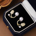 Wholesale A pair of diamond studded pearl tulip earrings with a simple and versatile personality, fashionable earrings and accessories