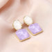 Wholesale Color blocking water ripple retro geometric square unique light luxury design earrings
