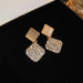 Wholesale New full diamond square earrings, simple and versatile, light luxury style earrings, niche earrings