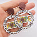 Wholesale Wooden Earrings Hollow Sunflower Personalized Leopard Print Striped Retro Earrings
