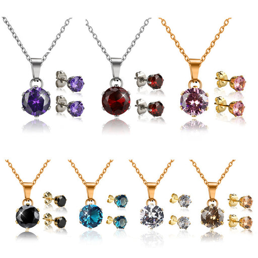 Precio original USD$0.83 - Precio original USD$0.83Precio original USD$0.83USD$1.50 - USD$1.67USD$1.50 - USD$1.67Precio actual USD$1.50Wholesale Popular multi-color zircon stainless steel necklace, violet gemstone titanium steel necklace, fashionable pendant set