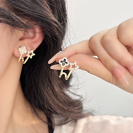 Precio original USD$0.17 - Precio original USD$0.17Precio original USD$0.17USD$0.33USD$0.33 - USD$0.33Precio actual USD$0.33Wholesale Silver Needle Exquisite Four Leaf Petal Earrings with Water Diamond Pentagram Earrings, Fashionable and Personalized Small Earrings Wholesale