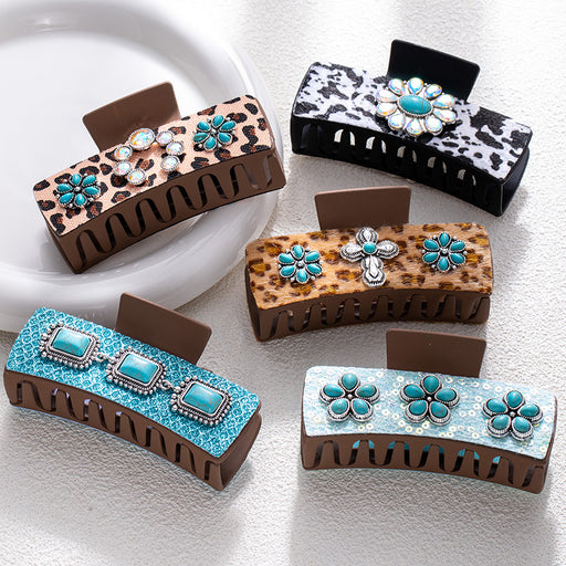 Precio original USD$1.51 - Precio original USD$1.89Precio original USD$1.51USD$3.02 - USD$3.78USD$3.02 - USD$3.78Precio actual USD$3.02Wholesale Bohemian Turquoise Western Grabber Retro Leopard Sequin Leather Ethnic Style Shark Clip