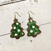 Wholesale Christmas flash leather wooden earrings wave point inlaid Christmas Tree Holiday earrings