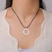 Wholesale Stainless steel leather rope necklace with a simple circular pendant