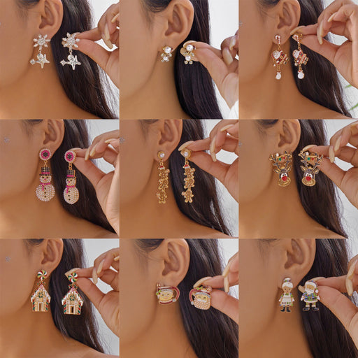 Prix d'origine USD$0.73 - Prix d'origine USD$2.14Prix d'origineUSD$0.73 - USD$2.14USD$0.73 - USD$2.14Prix actuel USD$0.73Wholesale Christmas element earrings cartoon full bead snowman earrings inlaid with diamonds light luxury holiday earrings