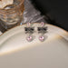 Wholesale Silver needle sweet pink heart earrings simple micro-inlaid zircon pearl earrings bow earrings