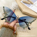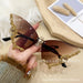 Wholesale Butterfly shaped diamond studded frameless sunglasses for women with fashionable personality and exaggerated sunglasses