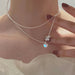 Wholesale Double layered design heart necklace with gradient gemstone peach shaped collarbone chain