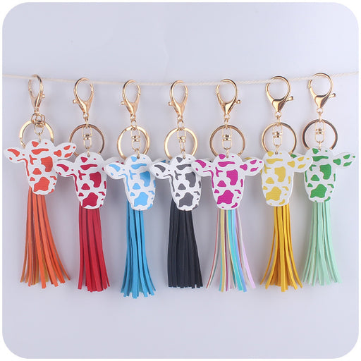 Original price USD$0.35 - Original price USD$0.35Original price USD$0.35USD$0.71USD$0.71 - USD$0.71Current price USD$0.71Wholesale Cartoon Western Bull Head Wooden Pendant Creative Colorful Long Tassel Key Ring Pendant