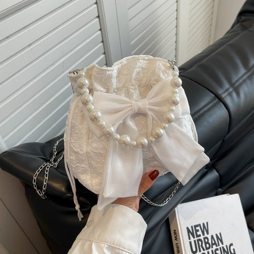 Original price USD$1.99 - Original price USD$1.99Original price USD$1.99USD$3.58USD$3.58 - USD$3.77Current price USD$3.58Wholesale Pearl bag, new fashionable bow chain bucket bag, niche and versatile crossbody bag