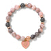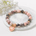 Wholesale 26 letter alphabet heart charm bracelet with 8mm stone beads pink zebra jasper and volcanic rock beads