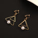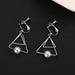 Wholesale Fashionable double triangle pearl earrings with multi-layer geometric ear clips