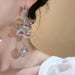 Wholesale Silver needle transparent flower earrings, niche and unique long design earrings