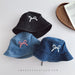Wholesale Children's denim fisherman hat with bow embroidery trendy children's baby sun hat