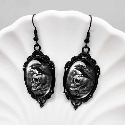 Original price USD$0.66 - Original price USD$0.66Original priceUSD$0.66USD$0.66 - USD$0.66Current price USD$0.66Wholesale Black Crow Skull Oval Lace Earrings Witch Earrings Pumpkin Black Cat Moon Earrings