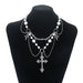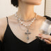Wholesale Niche high-end design double-layer high gloss pearl cross necklace versatile