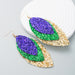 Wholesale Mardi Gras Triple PU Leather Sparkling Leaf-Shaped Leather Earrings