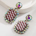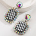 Wholesale Rhinestone-studded checkered alloy square stud earrings