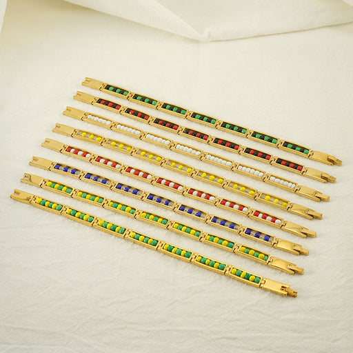 Original price USD$6.79 - Original price USD$7.65Original priceUSD$6.79 - USD$7.65USD$6.79 - USD$7.65Current price USD$6.79Wholesale 18K gold titanium steel bracelet with colored beads