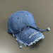 Wholesale Retro fringed denim baseball cap, soft top bow sun hat, sun protection duckbill cap