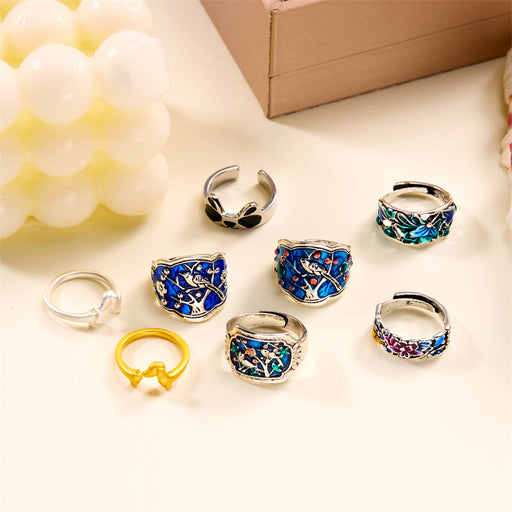 Original price USD$0.48 - Original price USD$0.68Original priceUSD$0.48 - USD$0.68USD$0.48 - USD$0.68Current price USD$0.48Wholesale Indigo oil Blue Plum Blossom ring niche national fashion ethnic style ring