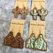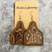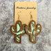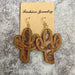 Wholesale Genuine leather earrings cowhide embossed cow brand cactus inlaid Western retro wood earrings